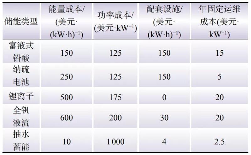Table 9 Investment costs of different types of energy storage systems 萬美元