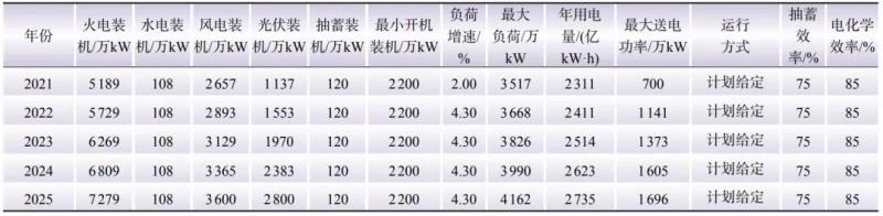 表1為該省級電網(wǎng)2021—2025年的計算邊界條件,主要包括電源分類裝機、負荷預(yù)測和省間聯(lián)絡(luò)線交換功率情況。