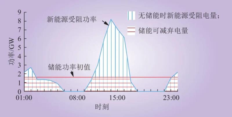 同時存在新能源受阻和負荷限電時,應(yīng)比較新能源受阻功率和負荷限電功率,選擇同時滿足二者要求的功率作為儲能功率初值。