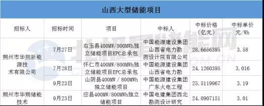 此前在2021年7月-9月,山西就曾有四個(gè)400MW/800MWh儲(chǔ)能項(xiàng)目招標(biāo),中標(biāo)均價(jià)3.199元/Wh。