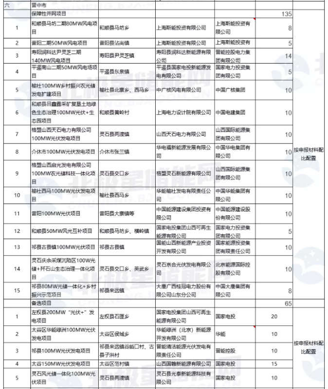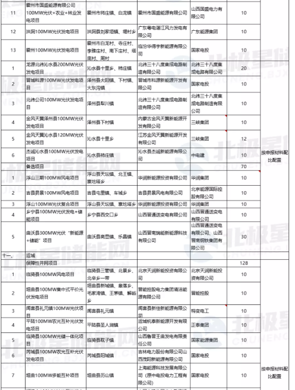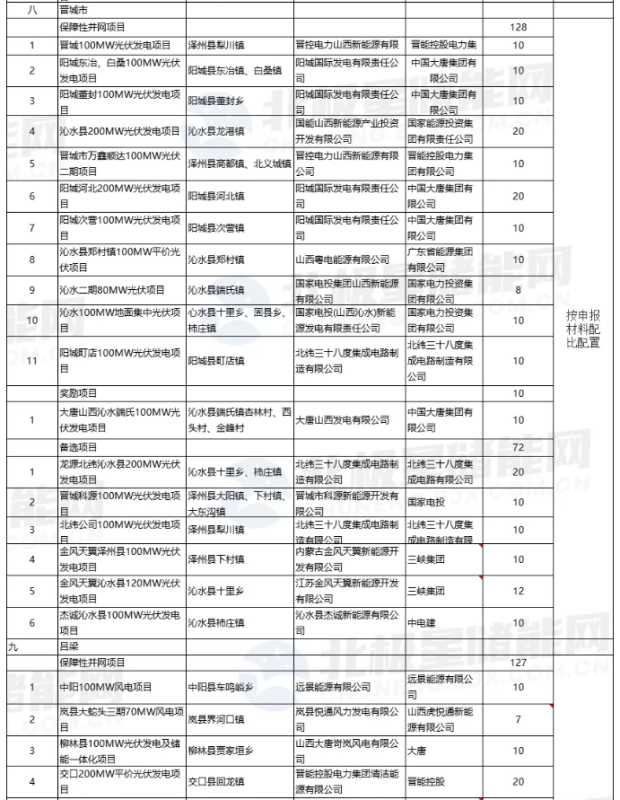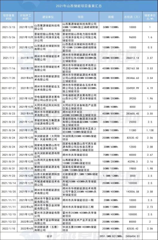 此前2021年10月22日,山西省能源局發(fā)布《關(guān)于下達(dá)山西省 2021年風(fēng)電、光伏發(fā)電保障性并網(wǎng)年度建設(shè)計(jì)劃的通》。風(fēng)、光合計(jì)17.792GW,其中保障性11.2GW+獎(jiǎng)勵(lì)700MW+備選5.892GW,文件項(xiàng)目列表中風(fēng)電配置10%儲(chǔ)能,光伏配置10%-15%儲(chǔ)能,除了未公布的儲(chǔ)能配比之外,儲(chǔ)能裝機(jī)量達(dá)469.5MW。由此可見,目前已經(jīng)備案的儲(chǔ)能項(xiàng)目基本上就已經(jīng)滿足了風(fēng)光發(fā)電項(xiàng)目要求。