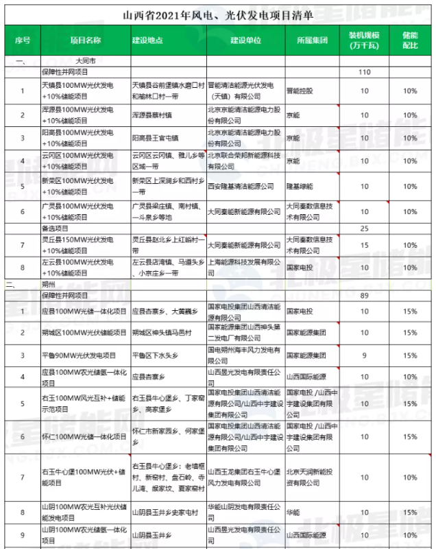 山西首批“新能源+儲(chǔ)能”試點(diǎn)示范項(xiàng)目公示:多種儲(chǔ)能技術(shù)混搭!總計(jì)780.7MW!
