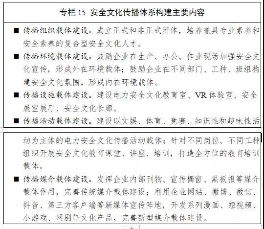 持續(xù)加強“和諧·守規(guī)”安全文化建設。貫徹落實《電力安全文化建設指導意見》,推進文化制度、組織機構、傳播體系、產(chǎn)業(yè)發(fā)展機制、品牌創(chuàng)建、教育培訓等六項重點工程建設,利用工業(yè)互聯(lián)網(wǎng)、大數(shù)據(jù)、人工智能技術,形成電力安全文化新形態(tài)。完善電力企業(yè)安全文化建設基本規(guī)范,打造各具特色的企業(yè)安全文化。強化電力企業(yè)管理層的安全文化引領作用,提高主要負責人參與安全文化活動的頻度。大力開展電力安全科普基地建設和科普宣傳工作,利用“安全生產(chǎn)月”“國家防災減災日”等活動,固化一批安全科普精品活動項目,提高全員安全文化建設參與度。