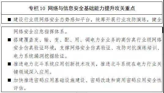 建立健全電力行業(yè)和企業(yè)網(wǎng)絡安全態(tài)勢感知、監(jiān)測預警、應急指揮體系,強化仿真驗證能力,推動電力北斗系統(tǒng)研發(fā)應用創(chuàng)新,推進密碼基礎設施建設,提升基礎設施的安全可控水平。