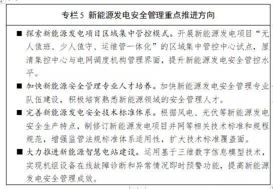 完善新能源發(fā)電安全技術標準體系,加強新能源和儲能電站發(fā)電并網(wǎng)安全管理,強化抽水蓄能電站建設運行安全監(jiān)管,提升新能源發(fā)電運行安全水平。