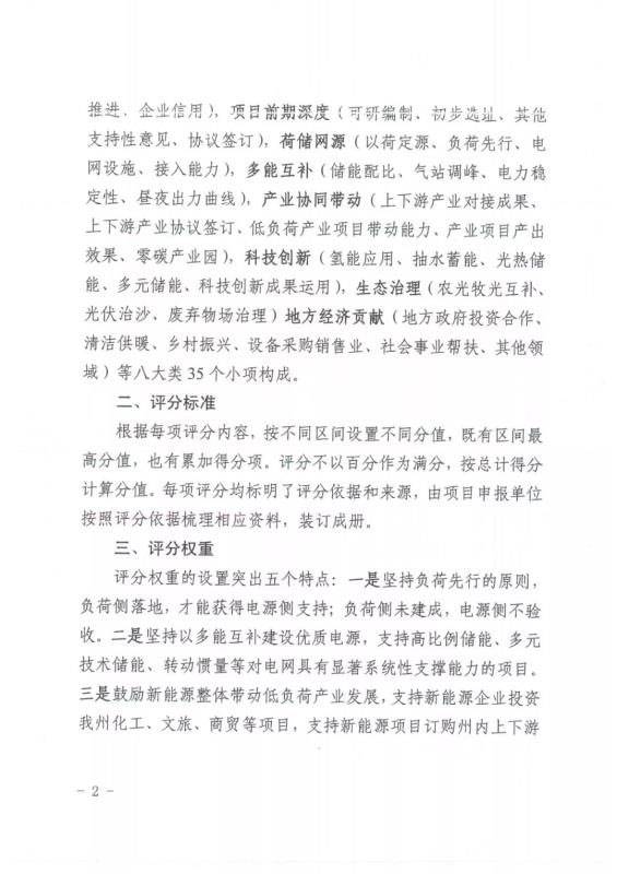 根據(jù)文件,其評分內(nèi)容主要包括企業(yè)投資能力、項(xiàng)目前期深度、荷儲網(wǎng)源、多能互補(bǔ)、產(chǎn)業(yè)協(xié)同帶動、生態(tài)治理以及地方經(jīng)濟(jì)貢獻(xiàn)等八大類,各類項(xiàng)目下面細(xì)小劃分35個小項(xiàng)。不同類別之間設(shè)置不同分值,以總得分計算排序。