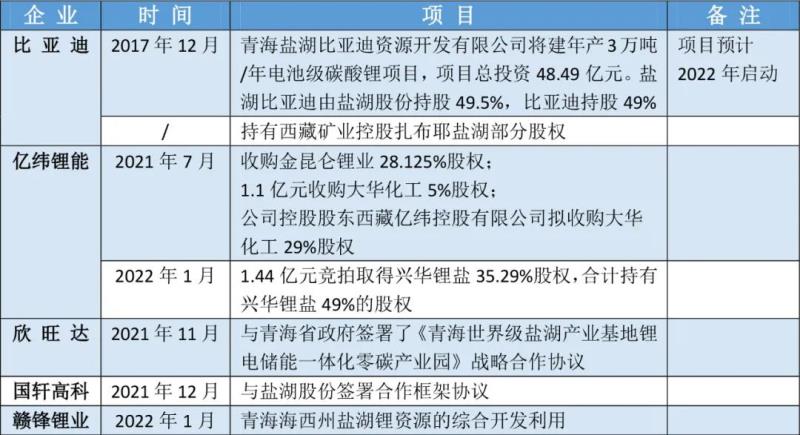 國內(nèi)電池產(chǎn)業(yè)鏈企業(yè)鹽湖鋰資源布局