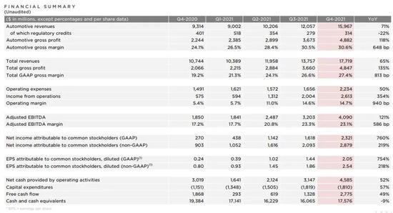 數(shù)據(jù)顯示:2021年,特斯拉交付量超過93.6萬輛,同比增長87.4%。根據(jù)特斯拉財報,其2021年營業(yè)收入538.23億美元,同比增長71%;歸母凈利潤76.4億美元,同比增長211%。按照當(dāng)前匯率計算,76.4億美元相當(dāng)于485.7億元人民幣,粗略計算,特斯拉去年平均每天凈賺超1億元人民幣。
