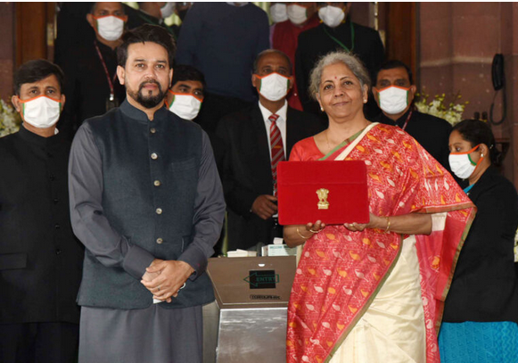 印度財(cái)政部部長Nirmala Sitharaman手持2021年預(yù)算文件夾