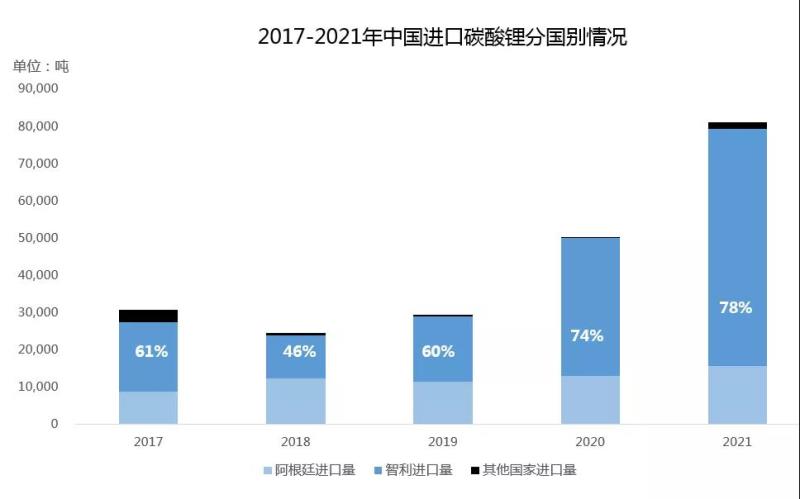 2)海外資源國有化將提升當?shù)刭Y源定價權(quán),獲得了資源收益的更大話語權(quán)和支配權(quán)。而根據(jù)統(tǒng)計,2021年中國進口鹽湖提鋰中,78%進口量來自智利,那么未來中國企業(yè)進口鋰產(chǎn)品成本或?qū)⑹艿匠钢狻?
