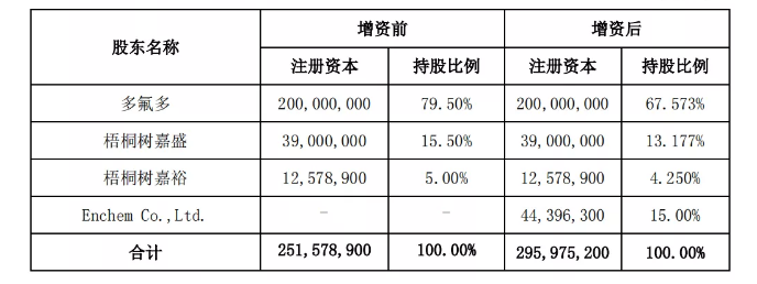 2月10日,多氟多發(fā)布公告,其控股子公司陽福新材料以增資擴(kuò)股的方式引入戰(zhàn)略投資者——韓國上市公司Enchem Co.,Ltd.。