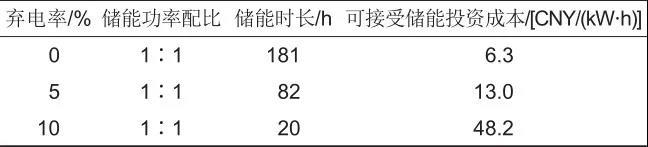 表3 不同新能源目標(biāo)棄電率下系統(tǒng)可最低儲(chǔ)能投資成本