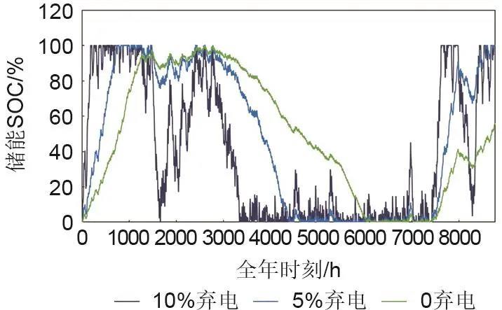 圖5 不同新能源棄電率目標(biāo)下儲(chǔ)能全年SOC變化情況