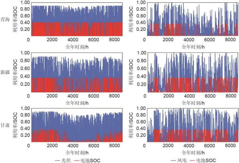 圖2 青海、新疆、甘肅風(fēng)光發(fā)電配置儲(chǔ)能全年運(yùn)行情況