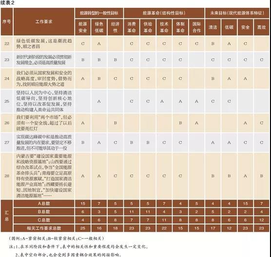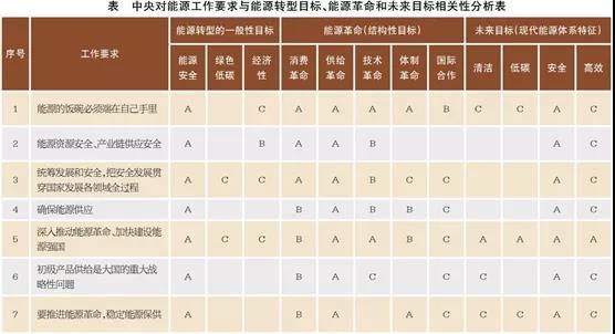 中國儲能網(wǎng)訊:1月7日,《人民日報》發(fā)表署名文章《能源的飯碗必須端在自己手里——論推動新時代中國能源高質(zhì)量發(fā)展》,系統(tǒng)梳理了近年來黨中央關(guān)于能源安全、傳統(tǒng)能源和新能源發(fā)展、能耗“雙控”、能源技術(shù)創(chuàng)新和能源國際合作等多方面的工作要求(可總結(jié)為28條要求)。為了深入理解這28項工作要求對我國能源發(fā)展的具體指導(dǎo)方向與工作側(cè)重點,筆者從能源轉(zhuǎn)型目標(biāo)、能源革命和能源未來目標(biāo)三個方面對上述工作要求進(jìn)行梳理與分析,并以相關(guān)性緊密程度形式呈現(xiàn)(見表,其中A表示緊密相關(guān),B表示較緊密相關(guān),C表示一般相關(guān))。其中,能源轉(zhuǎn)型目標(biāo)指出了現(xiàn)階段我國能源發(fā)展最應(yīng)重視的方面與問題;能源革命指出了我國能源發(fā)展應(yīng)采取的戰(zhàn)略路徑與重要措施;能源未來目標(biāo)體現(xiàn)的是新時代我國新型能源體系應(yīng)具備的特征。值得重視的是,我國在踐行“能源的飯碗必須端在自己手里”的進(jìn)程中,需要堅持系統(tǒng)觀念并與時俱進(jìn),在處理多重關(guān)系的過程中,確保能源轉(zhuǎn)型適應(yīng)經(jīng)濟社會發(fā)展需要,確保轉(zhuǎn)型進(jìn)程中的能源安全。