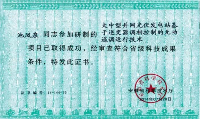 2014年,中匯電氣參與“大中型并網(wǎng)光伏發(fā)電站基于逆變器調(diào)相控制的無功遙調(diào)技術(shù)”科研項(xiàng)目,并榮獲“省級科研成果”獎。結(jié)合應(yīng)用“逆變器無功群控群調(diào)技術(shù)”成功開發(fā)RE-7000 AGC/AVC功率控制系統(tǒng)。