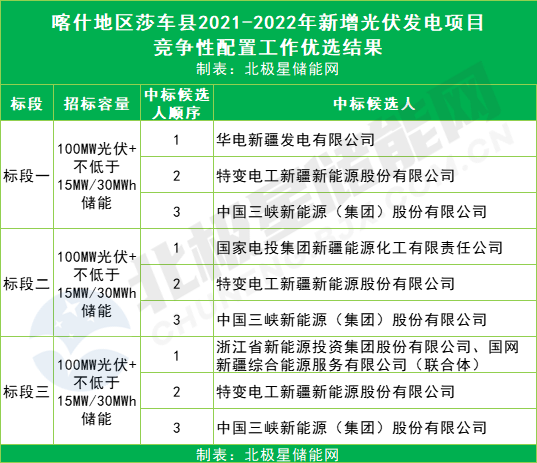 中國(guó)儲(chǔ)能網(wǎng)訊:2月13日,新疆喀什地區(qū)莎車縣2021-2022年新增光伏發(fā)電項(xiàng)目競(jìng)爭(zhēng)性配置工作優(yōu)選結(jié)果公示,華電新疆中標(biāo)第一標(biāo)段,國(guó)家電投新疆能源化工中標(biāo)第二標(biāo)段,浙江省新能源投資集團(tuán)與國(guó)網(wǎng)新疆綜合能源服務(wù)聯(lián)合體中標(biāo)第三標(biāo)段。