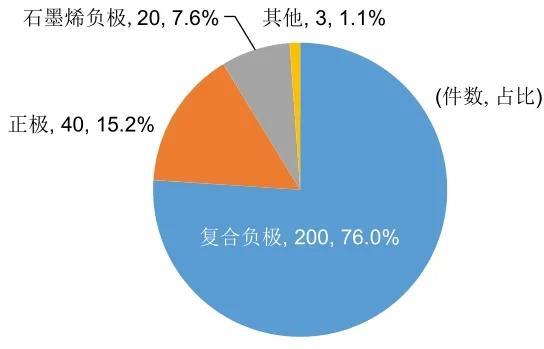圖10 石墨烯在鋰離子電池各類負(fù)極中應(yīng)用的專利申請概況
