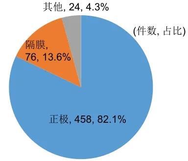 圖7 石墨烯在鋰離子電池各結(jié)構(gòu)部件中應(yīng)用的專利申請量