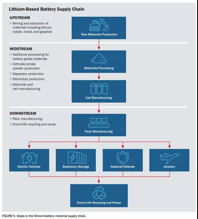 2021年6月,DOE根據(jù)行政命令14017(Executive Order 14017)“America’s Supply Chains”,發(fā)布了一份為期100天的大容量電池供應鏈評估報告。建議建立關(guān)鍵材料的國內(nèi)生產(chǎn)和加工能力,以支持完全國內(nèi)的端到端電池供應鏈。拜登總統(tǒng)的兩黨基礎(chǔ)設施法案撥款近70億美元,用于加強美國電池供應鏈,包括在不進行新開采或采礦的情況下生產(chǎn)和回收關(guān)鍵礦物,以及為國內(nèi)制造業(yè)采購材料。