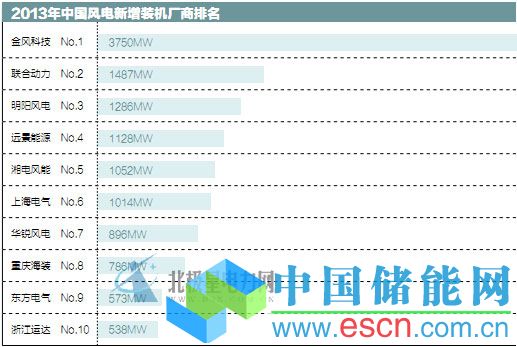 與2012 年的新增裝機(jī)量相比,2013年外資整機(jī)制造商沒有一家進(jìn)入前1 0名,金風(fēng)科技獨(dú)占鰲頭,華銳風(fēng)電、聯(lián)合動力新增裝機(jī)量大量下滑,遠(yuǎn)景能源快速崛起。2013年,新增裝機(jī)排名前5的風(fēng)電機(jī)組制造商所占市場份額由2012年的60%進(jìn)一步下降至54.1%,同比下降了6 個百分點(diǎn)。