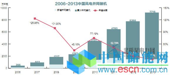 中國儲能網(wǎng)訊:2011年,我國風(fēng)電新增裝機(jī)1763萬千瓦,與2010年新增1892萬千瓦相比呈下降趨勢。這意味著,風(fēng)電自2005年以來連續(xù)5年持續(xù)升溫的趨勢開始出現(xiàn)轉(zhuǎn)折。不過,經(jīng)過 2012 年的低谷后,2013 年中國風(fēng)電新增裝機(jī)容量1610萬千瓦,較2012年的1296 萬千瓦大幅提高24%,中國風(fēng)電開始走向復(fù)蘇。