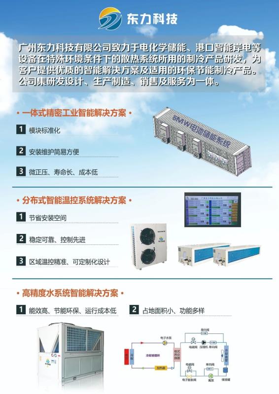 公司專注于制冷(熱)交換設(shè)備,并提供一站式技術(shù)服務(wù),產(chǎn)品包括:集聯(lián)型高壓儲(chǔ)能和集中式低壓儲(chǔ)能系統(tǒng)專用空調(diào)、港口碼頭岸電專用空調(diào)、中央空調(diào)、高壓變頻及電力電子空水冷卻裝置、潔凈室專用空調(diào)機(jī)組、組合式空調(diào)機(jī)組、整體式恒溫恒濕空調(diào)機(jī)組、水(風(fēng))冷機(jī)組、熱泵機(jī)組、風(fēng)機(jī)盤管、特種空調(diào)設(shè)計(jì)、冷卻塔和管道安裝維修等。