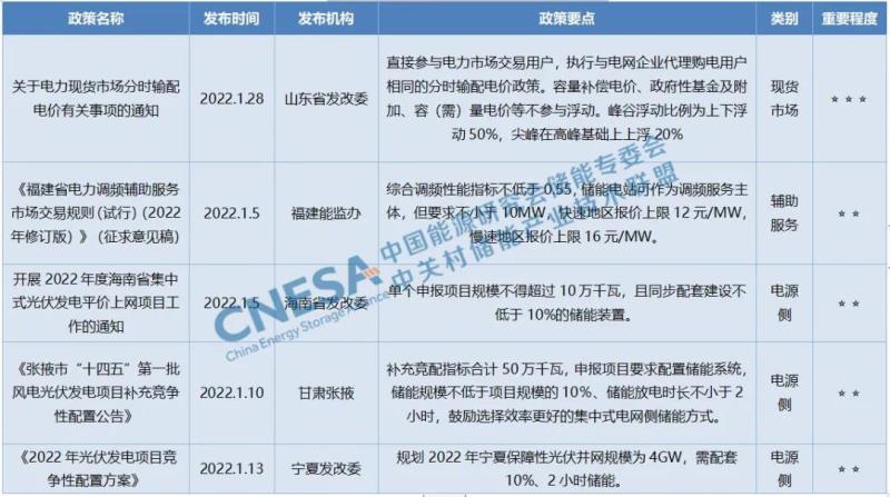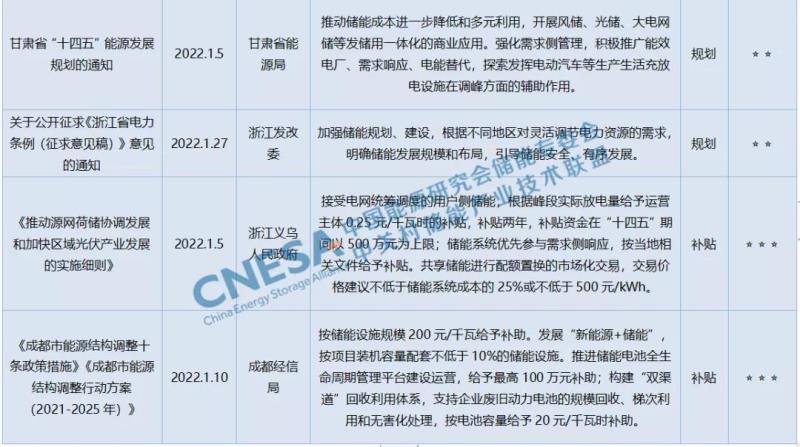 中國儲能網(wǎng)訊:1月,新年伊始,萬象更新,儲能產(chǎn)業(yè)熱度依舊高漲,本月儲能政策從國家到地方共有40余項發(fā)布或征求意見,涉及電力市場、標(biāo)準(zhǔn)立項、并網(wǎng)運(yùn)行、分布式光伏輔助服務(wù)市場、新能源配置儲能等方面,中關(guān)村儲能產(chǎn)業(yè)技術(shù)聯(lián)盟對本月儲能政策進(jìn)行了梳理解讀,希望與業(yè)界同仁共同交流探討。