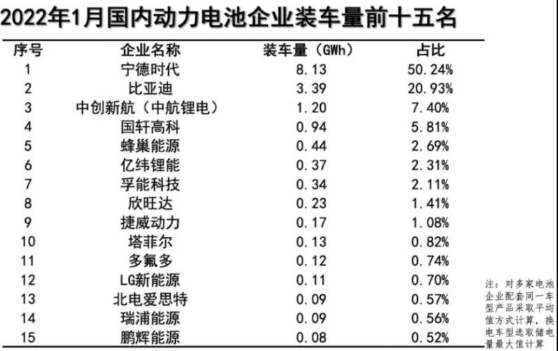 總體看來,寧德時(shí)代、比亞迪、中創(chuàng)新航、國軒高科的名次和2021年12月的排名沒有變化,充分說明頭部企業(yè)的地位穩(wěn)固。