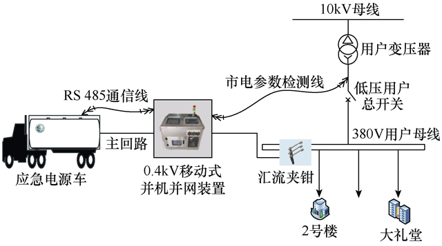 然而,在傳統(tǒng)應用模式下,由于多數0.4kV應急電源車并不具備并機并網功能,所以在應用中會面對以下幾種情況:①應急電源車在接入及退出用戶側母排時很可能迫使用戶經歷多次短時停電;②應急電源車的接入只能縮短市電突然掉電期間的用戶停電時間;③在開展不停電更換用戶變壓器等復雜項目時,應急電源車使用受限。