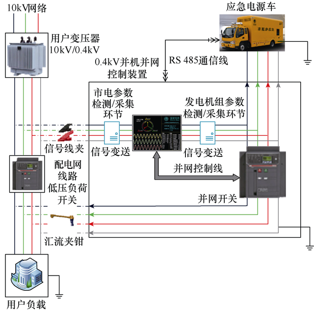 與傳統(tǒng)供電保障模式相比,配備0.4kV移動式并機并網裝置的應急電源車主動性更高,實用性更強,使實際工作方式產生了新的變化。