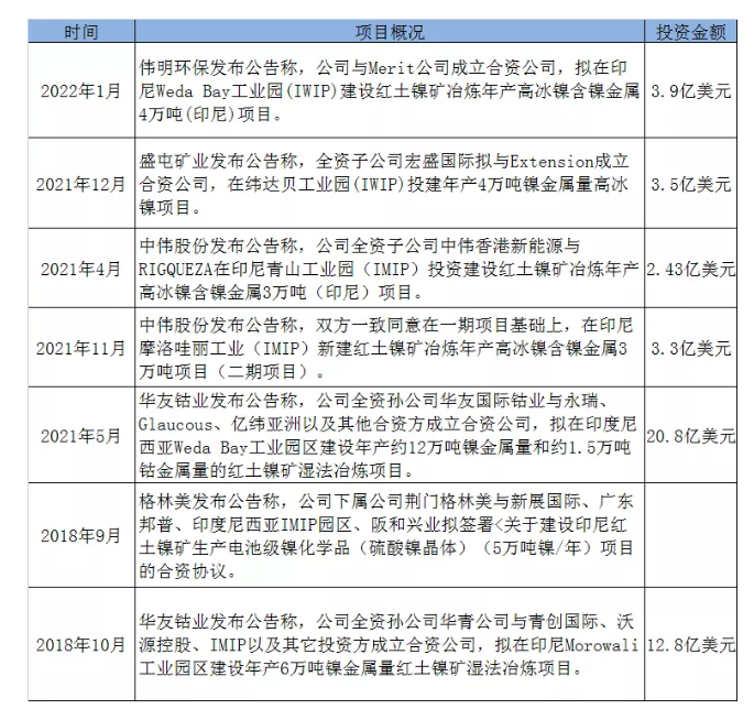 在此情況之下,頭部三元前驅(qū)體企業(yè)紛紛布局海外鎳資源,通過(guò)簽署供貨長(zhǎng)單或投資建廠(chǎng)的方式,提前鎖定印尼鎳金屬資源量與價(jià)格模式,打通并進(jìn)一步優(yōu)化原材料供給渠道,從而降低其生產(chǎn)成本。