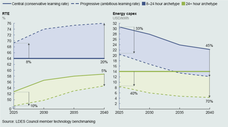為了獲得更大的社會效益并與其他低碳儲能技術(shù)競爭,更廣泛的長時儲能行業(yè)必須實(shí)現(xiàn)最具競爭力的市場參與者設(shè)定的目標(biāo)。