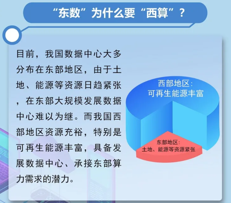 所謂“東數(shù)西算”,“數(shù)”指的是數(shù)據(jù),“算”指的是算力。通俗地講,“即把東部的數(shù)據(jù)傳輸?shù)轿鞑窟M行計算和處理,如同南水北調(diào)、西電東送,‘東數(shù)西算’是國家又一項重要戰(zhàn)略工程。”中國信息通信研究院云計算與大數(shù)據(jù)研究所副所長李潔如是說。