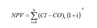 公式中:NPV為凈現(xiàn)值,CI為現(xiàn)金流入量,CO為現(xiàn)金流出量,t表示第t年,i為折現(xiàn)率。