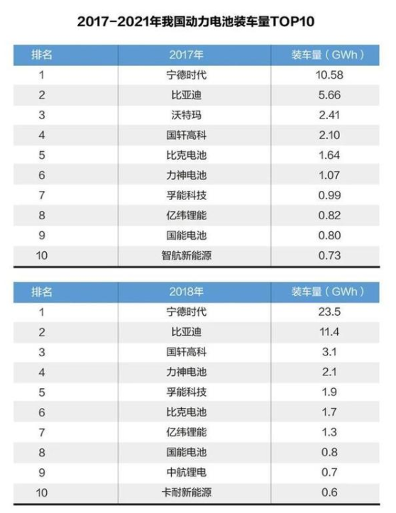 回顧2017-2021年,這5年間,除了第一梯隊(duì)的寧德時(shí)代和比亞迪巋然不動(dòng),我國動(dòng)力電池裝車量TOP10也發(fā)生了新舊更替。