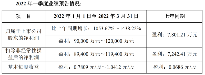 相比年度業(yè)績預告,雅化集團今年一季度業(yè)績預告更加亮眼。公司預計今年一季度預盈9億元~12億元,同比增長1053.67%~1438.22%。公司表示,業(yè)績大幅上漲是因為一季度鋰市場量價齊升。