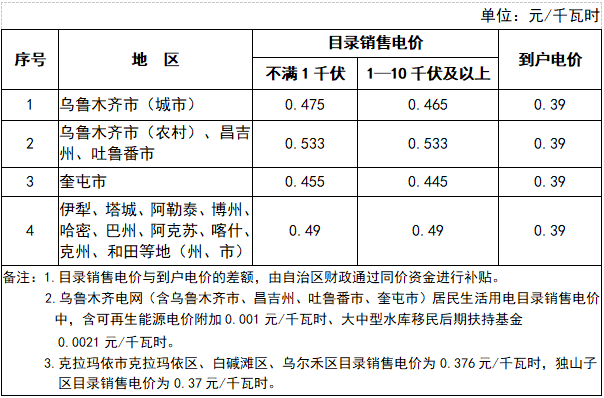 新疆電網(wǎng)居民生活用電目錄銷(xiāo)售電價(jià)表