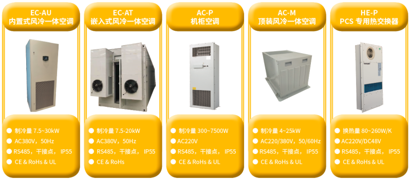 2017年起,黑盾股份開始為儲能系統(tǒng)提供風(fēng)冷溫濕度解決方案,針對儲能電池和PCS的發(fā)熱特點(diǎn)和運(yùn)行要求,先后研發(fā)了儲能集裝箱專用的一體式風(fēng)冷空調(diào)和熱交換器,產(chǎn)品根據(jù)不同儲能集裝箱的設(shè)計(jì)要求,分為內(nèi)置一體式、嵌入一體式、頂置式等不同系列產(chǎn)品,受到客戶廣泛認(rèn)可。