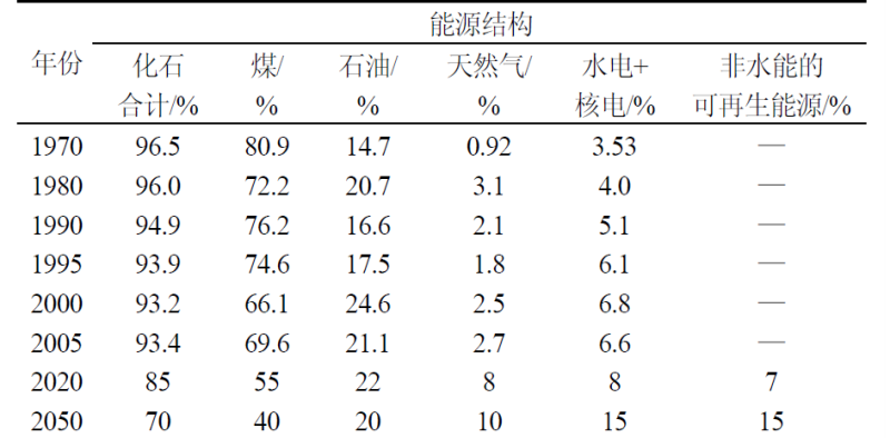 相關(guān)統(tǒng)計(jì)數(shù)據(jù)顯示,20世紀(jì)70年代以來(lái),化石能源在我國(guó)一次能源構(gòu)成中的占比呈逐年下降趨勢(shì),但仍以煤炭為主。