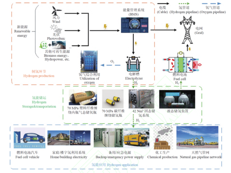 制氫、儲(chǔ)運(yùn)與利用全產(chǎn)業(yè)鏈?zhǔn)疽鈭D