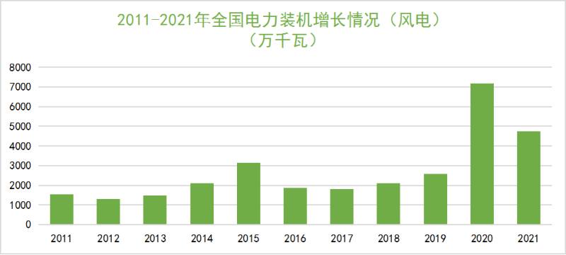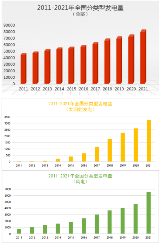 以下是2011-2021年全國各類型發(fā)電量情況。