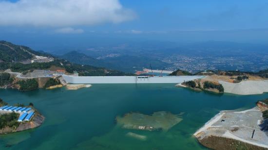 陽蓄電站上水庫碾壓混凝土重力壩,最大壩高101米,長477米,底寬90米,頂寬8米。在大壩建設(shè)中,中國水電八局攻克高溫多雨環(huán)境下開挖與碾壓混凝土澆筑等技術(shù)難題,首創(chuàng)了全壩段6米連續(xù)升層斜層平推法碾壓混凝土施工工藝,并通過可視化+GPS碾壓監(jiān)控系統(tǒng)等一系列數(shù)字化手段和標準化工藝,為大壩混凝土施工質(zhì)量提供堅強保障。大壩蓄水后,經(jīng)檢測無裂縫,各項指標優(yōu)良。