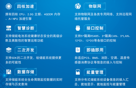 ES-CCU 儲能系統(tǒng)一體化集控單元是集裝箱儲能系統(tǒng)或分布式儲能柜系統(tǒng)的就地監(jiān)控和管理單元,具備儲能系統(tǒng)各部件信息的實時一體化匯聚、顯示、聯(lián)控等功能,具備就地監(jiān)控保護(hù)和能量管理的功能,支持 IEC61850、MODBUS、IEC104、MQTT 等多種通訊規(guī)約,具備儲能設(shè)備和電池系統(tǒng)安全、健康等運行工況的高級診斷分析功能,具備就地智慧運維功能,是儲能系統(tǒng)集約化、智能化、一體化的低成本的就地集控管理設(shè)備。