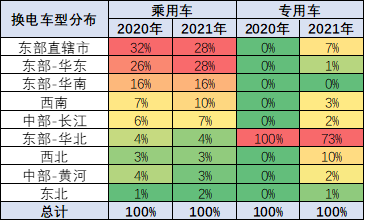 乘用車的換電模式主要是在東部直轄市和華東地區(qū)推進,相對比較強,華南地區(qū)也有一定的市場。專用車的換電模式,主要的市場在華北地區(qū)和西北地區(qū),發(fā)達地區(qū)是主要的市場,而東部直轄市也有一定的市場。