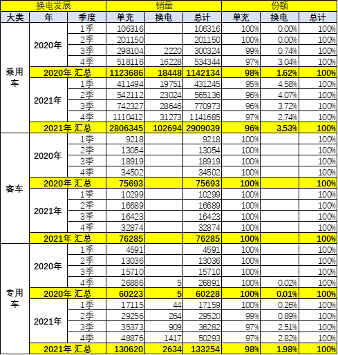 目前數(shù)據(jù)可能相對來說有所遺漏,但2021年開始,這個數(shù)據(jù)應該相對就是屬于比較準確的,原因在于主力車型一般都會加速推進產(chǎn)品的升級,電動車車輛型號很少生產(chǎn)兩年以上的情況,因此,大家可以看到我們2021年的換電車型形成了較快增長的良好態(tài)勢。