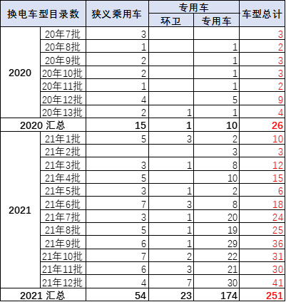 由于換電車型的標志是在2020年開始明確,因此部分2020年前申報的車型沒有換電的標識,可能有統(tǒng)計遺漏。由于新能源車的發(fā)展迅速,前期車型快速升級。