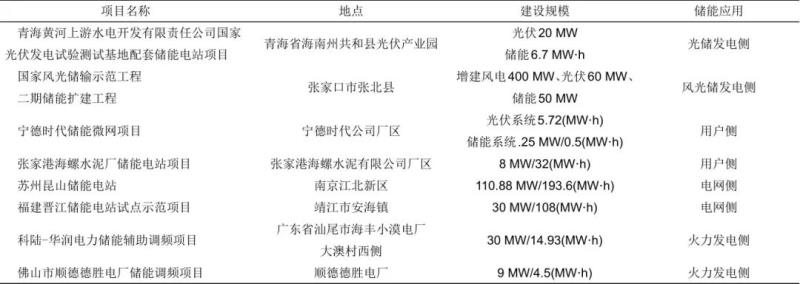 2020年,國家能源局從技術先進、自主創(chuàng)新、綜合效益等七個維度評選出首批儲能科技創(chuàng)新示范項目,如表3所示。首批示范項目總結了儲能在不同地域、不同應用領域的發(fā)展情況,鼓勵相關儲能企業(yè)大膽嘗試、大膽實踐,為廣泛推廣儲能在電力系統(tǒng)的應用發(fā)揮典型和示范作用,以推動儲能產(chǎn)業(yè)高質(zhì)量發(fā)展。
