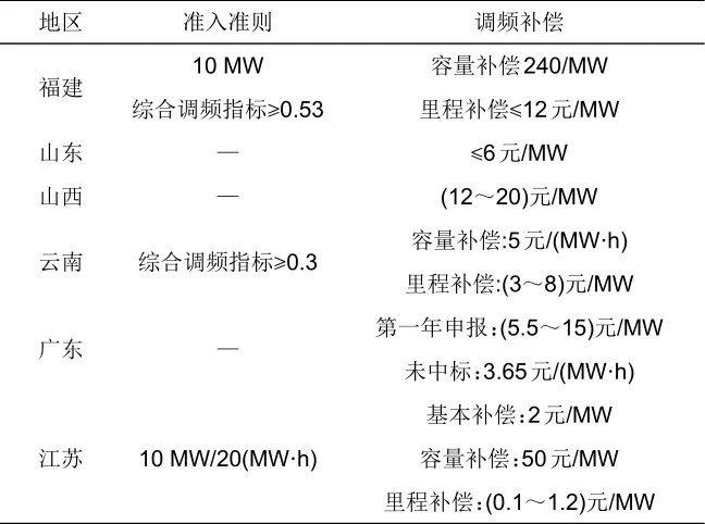 表1 典型地區(qū)儲能參與調(diào)頻補償標準