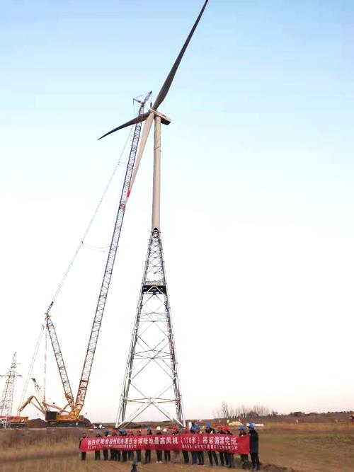 中國儲能網(wǎng)訊:近日,中國電建所屬山東電建三公司金膠州里岔分散式風(fēng)電項目6號風(fēng)機(jī)成功吊裝,該風(fēng)機(jī)預(yù)應(yīng)力桁架式塔架高度91.4米,風(fēng)機(jī)安裝高度達(dá)170米,是國內(nèi)第一高塔架,也是目前全世界最高的風(fēng)機(jī)。